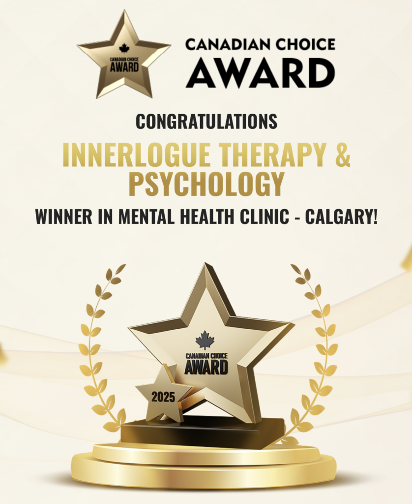 We are proud to announce that Innerlogue Therapy & Psychology has been named the 2025 Canadian Choice Award winner for Mental Health Clinic in Calgary. This achievement reflects our ongoing commitment to delivering exceptional therapy services and supporting the well-being of our community. Being recognized at a national level inspires us to continue providing compassionate, client-centered, and innovative care to everyone we serve.